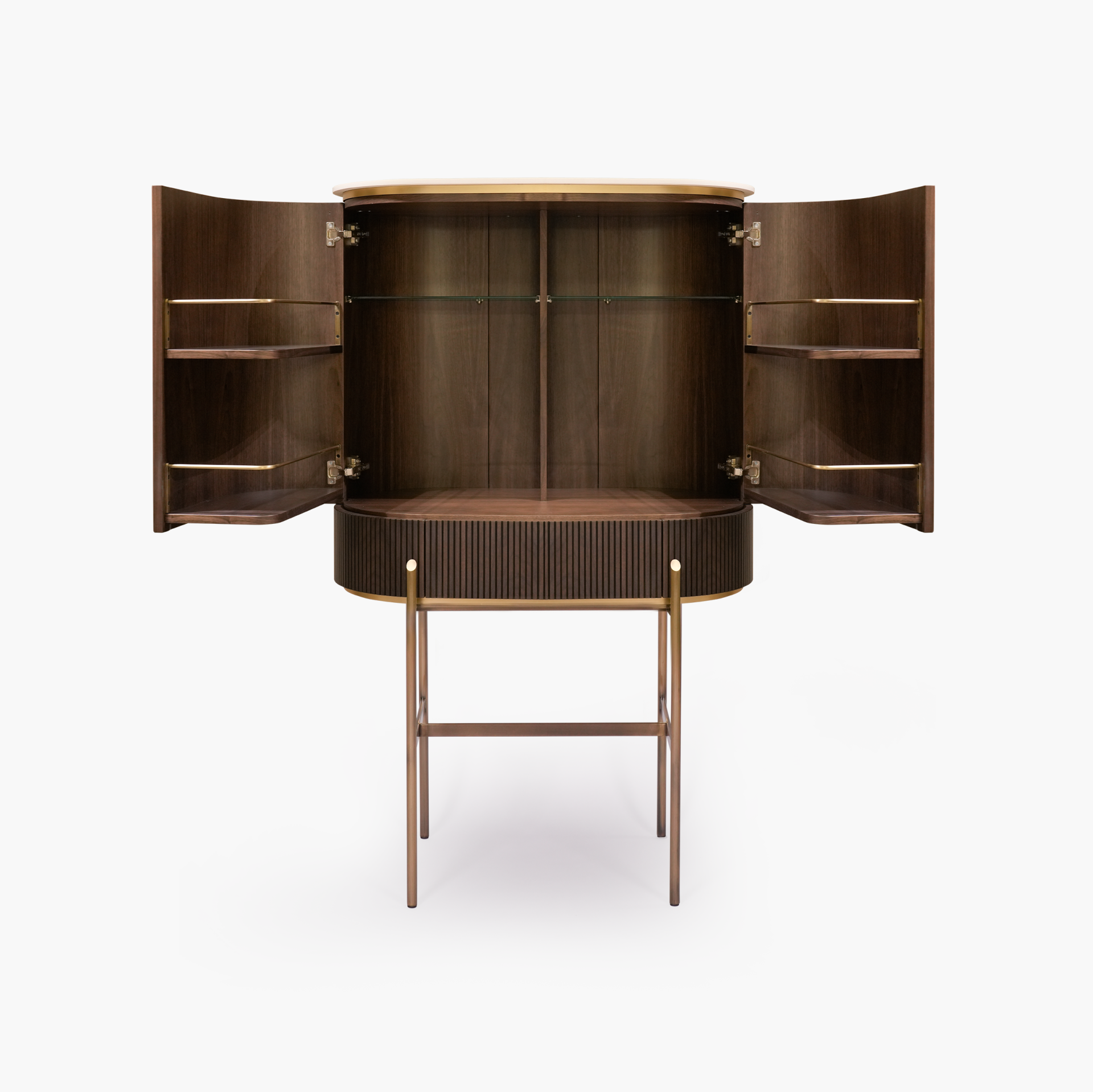 Изысканное удовольствие. Понятия элегантности и очарования меняются. Коллекция Oxford B, выполненная из темного американского ореха и травертина или ониксового фарфора с соединениями, придется по вкусу даже самым изысканным вкусам.